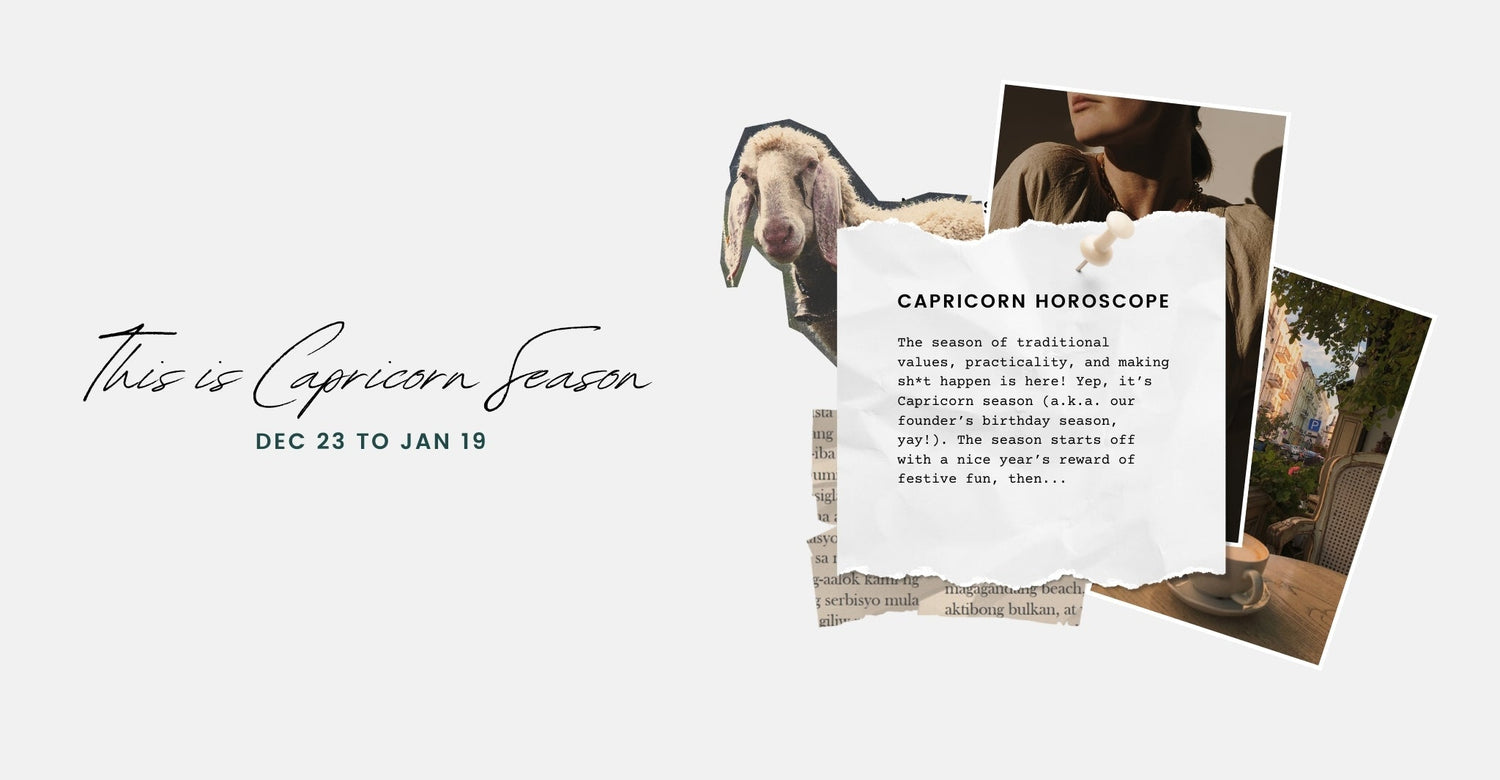 The season of traditional values, practicality, and making sh*t happen is here! Yep, it’s Capricorn season (a.k.a. our founder’s birthday season, yay!). The season starts off with a nice year’s reward of festive fun, then the new year brings resolutions & (re)starting on big projects. Good thing this earth sign’s energy will guide you cool-headedly into it all.