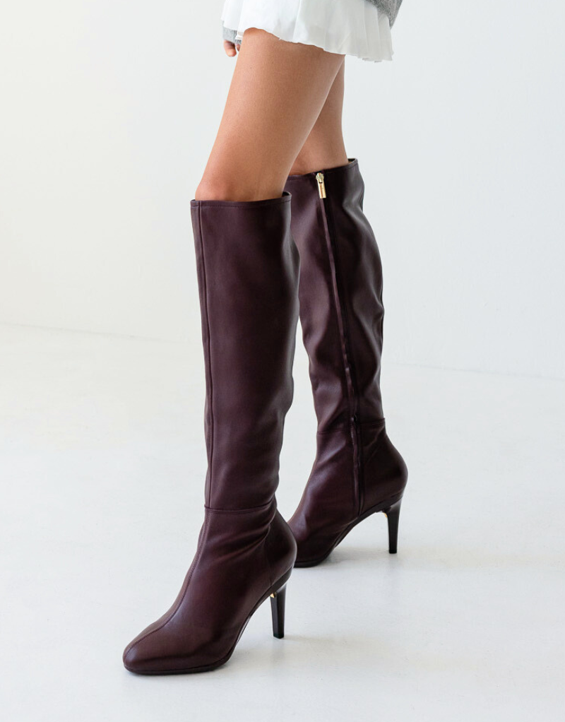 The Blake Knee High Boot - Cherry Mocha Leather 4 Stiletto The Blake Knee High Boot - Cherry Mocha Leather 4 Stiletto