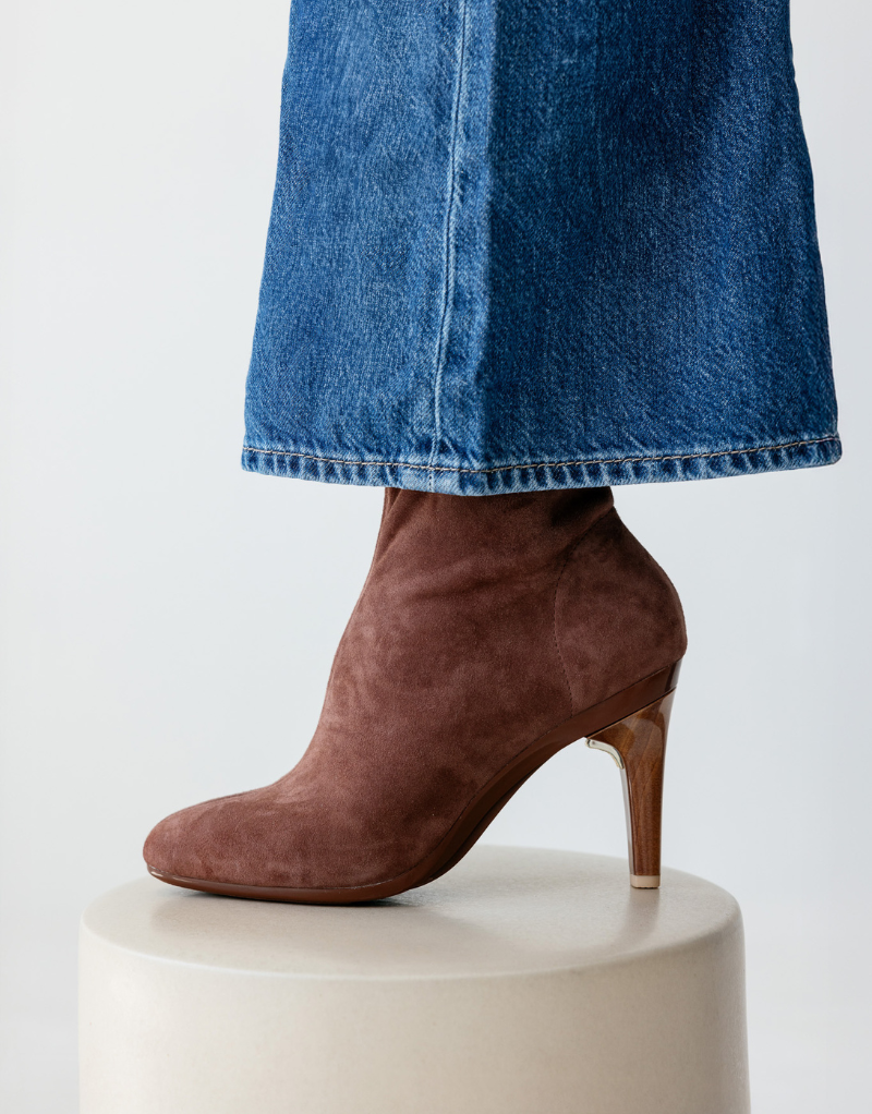 The Amy Bootie - Walnut Suede 4 Stiletto The Amy Bootie - Walnut Suede 4 Stiletto