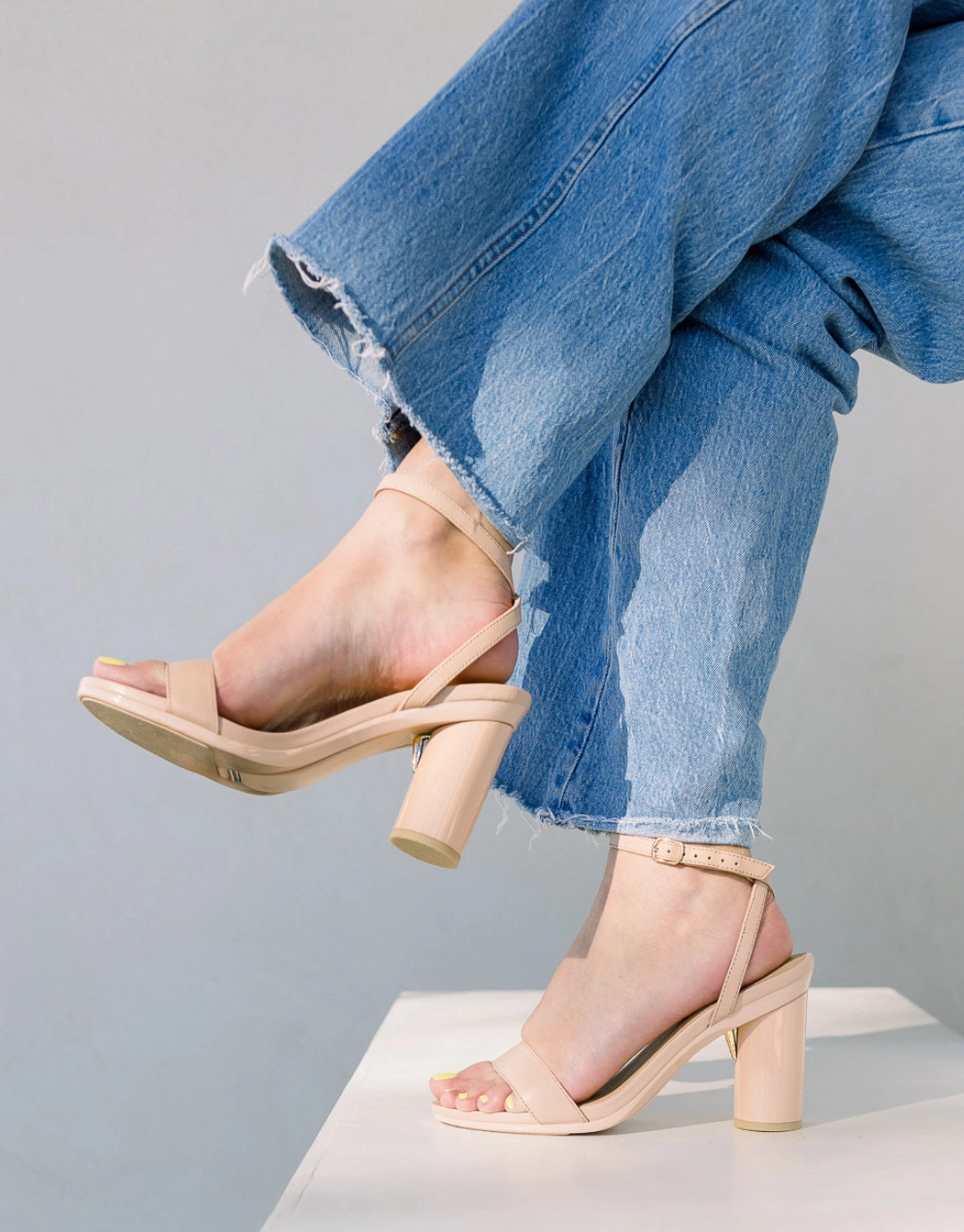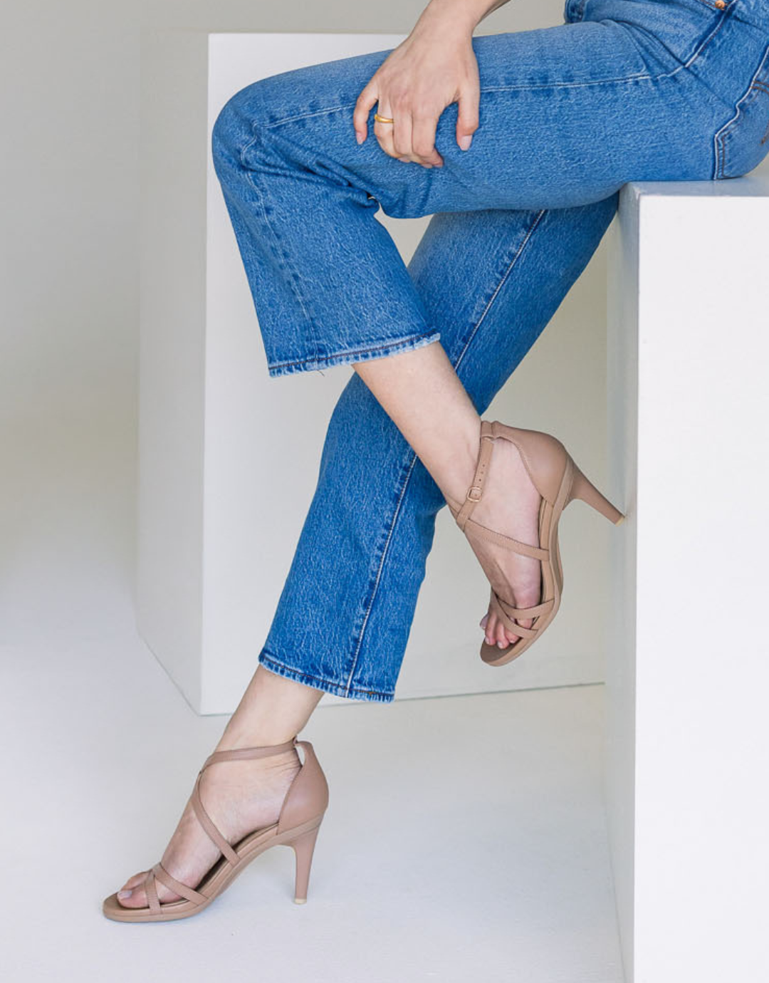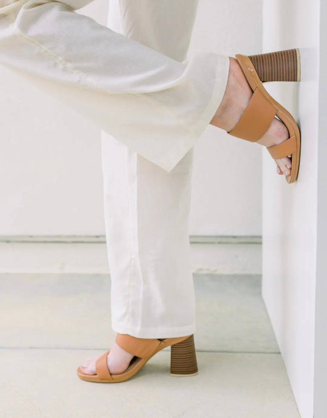 Flared-out strappy sandal.