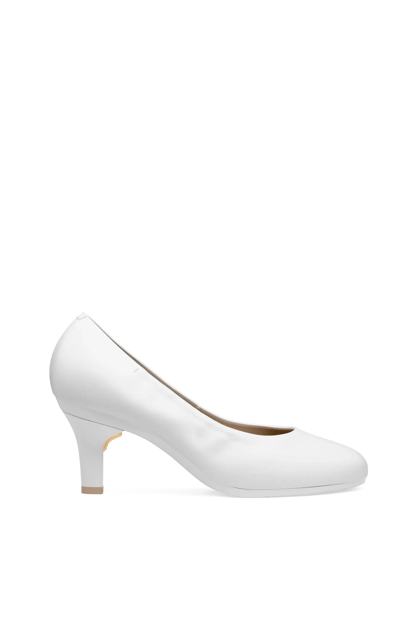 Comfortably confident, The Ballet Pump is a sleek style made for workwear and beyond. With a closed, round-toe and no ankle-strap for easy slip-on wear, these shoes will have you owning every room in style. Now featuring a fully leather exterior look with hidden elastic for ultimate stretch and comfort at all heights!