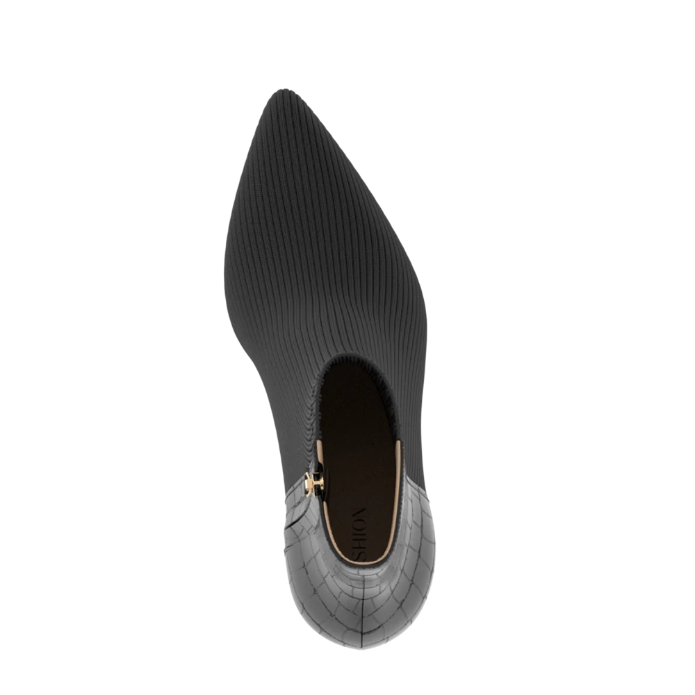 Flattering and functional, the Pashion Bootie is a fitted knit ankle boot made for all-day comfort and style. This Bootie features a sleek pointed toe, stretchy weather-resistant ribbed knit front, a chic leather-lined back, and inner zippers for ease.