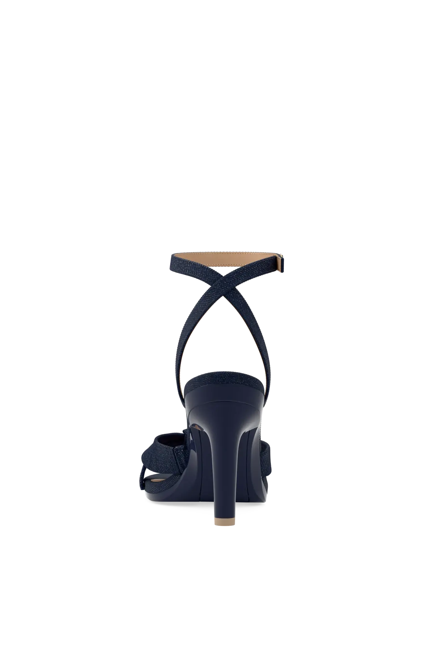 Our coastal-inspired summer style edition of our beloved Brenna silhouette, the Brittany features a chic knotted toe strap, a strappy open back, a rounded open-toe front, and adjustable ankle straps. Available for a limited time in our seasonal Midnight Denim heel material.