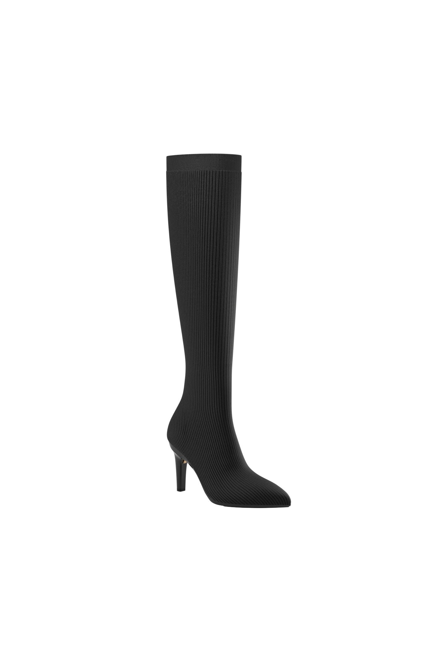 Comfort meets style in the Knee High Knit Boot. Made with chic and stretchy ribbed knit, this boot features a sleek pointed toe, weather-resistant materials, and a perfect at-the-knee fit for all of your cozy fall and winter style needs.
